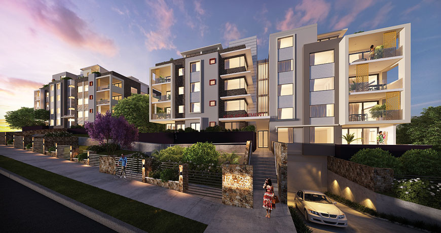 Thoughtful, well designed landscaping reflects the luscious surrounds, bringing the outside in to evoke a sense of peace and tranquility within each apartment.